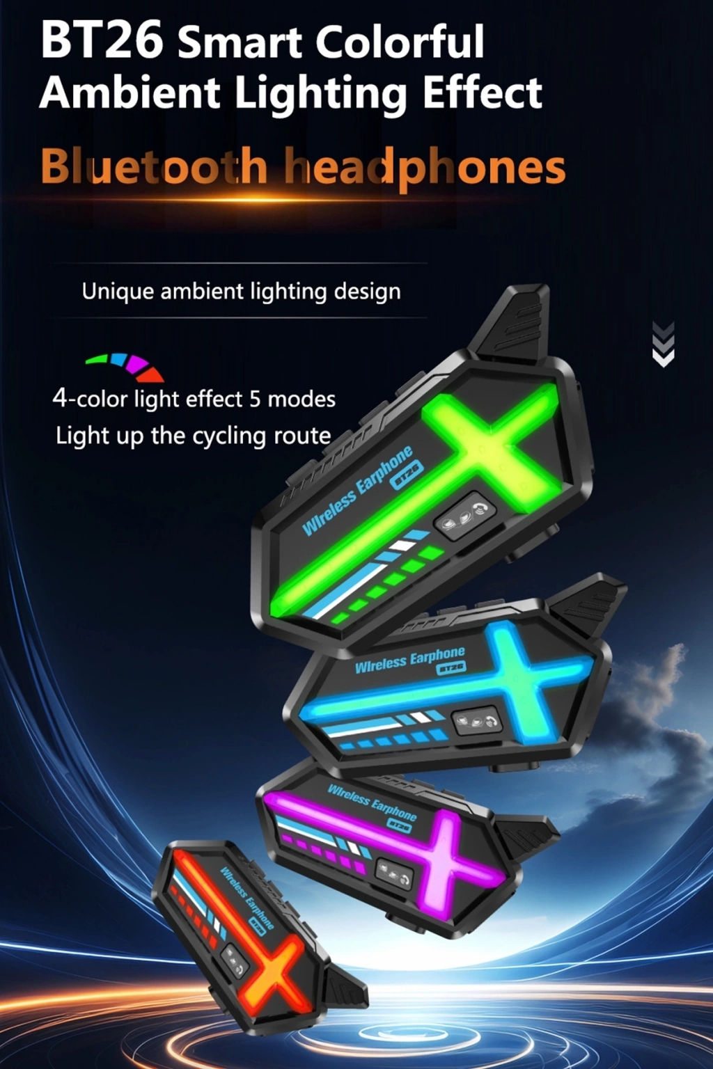BT26 akıllı renkli ortam aydınlatma efekti Bluetooth kulaklı