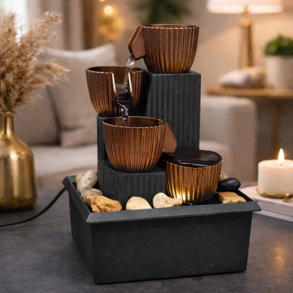 Özellikleri: Kaliteli Sert Malzemeden Üretilmiştir. Dekoratif Taşlar Paket İçinde Çıkmaktadır. Tasarım Ve Görünümü İle Oldukça Dikkat Çekmektedir. Havuz Kısmına Biraz Su Doldurunuz Ve Hafif Motor Sesi İle Çalışmaya Başlar. 3 Adet Aaa Pil Çalışmaktadır. Masanızda Ofisinizde İstediğiniz Yerde Kullanım Kolaylığı.