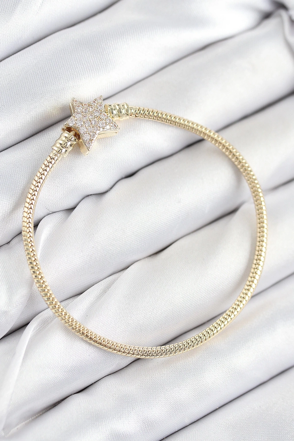 Pirinç Charm Zirkon Taşlı Yıldız Model Gold Renk Kadın Bileklik