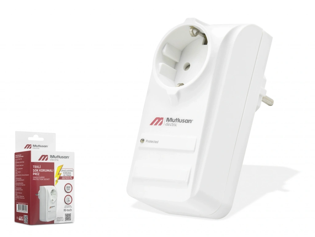 Şok Korumalı Tekli Priz (Beyaz)